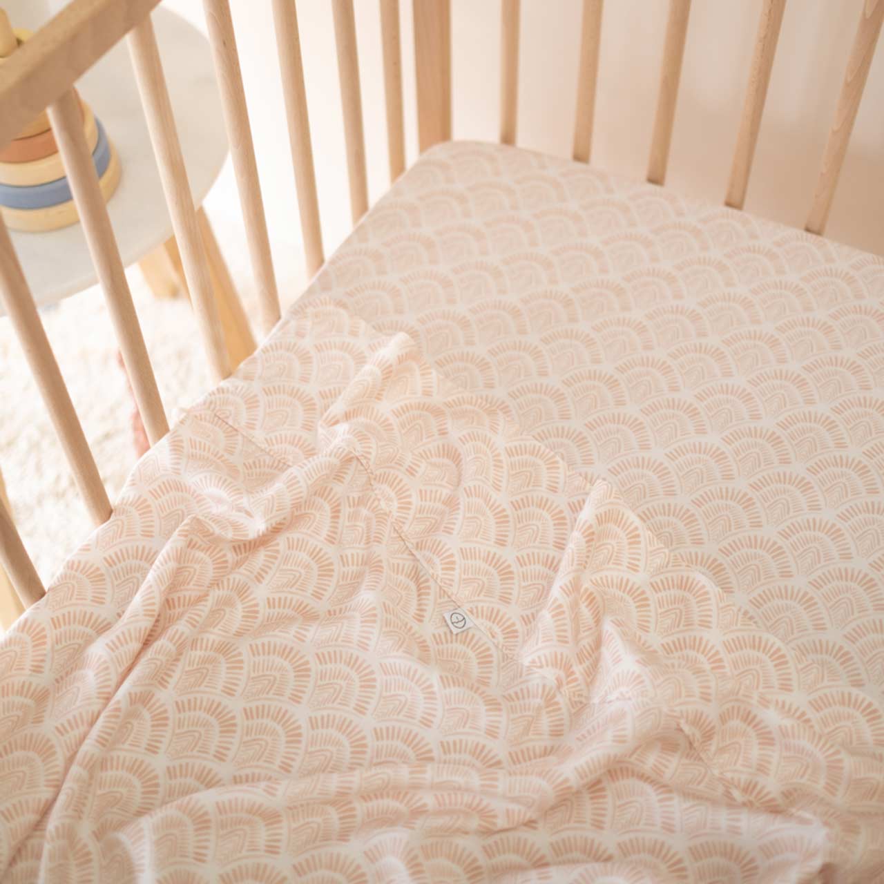 100% Organic Bamboo Cot Sheet – Peach Scallop